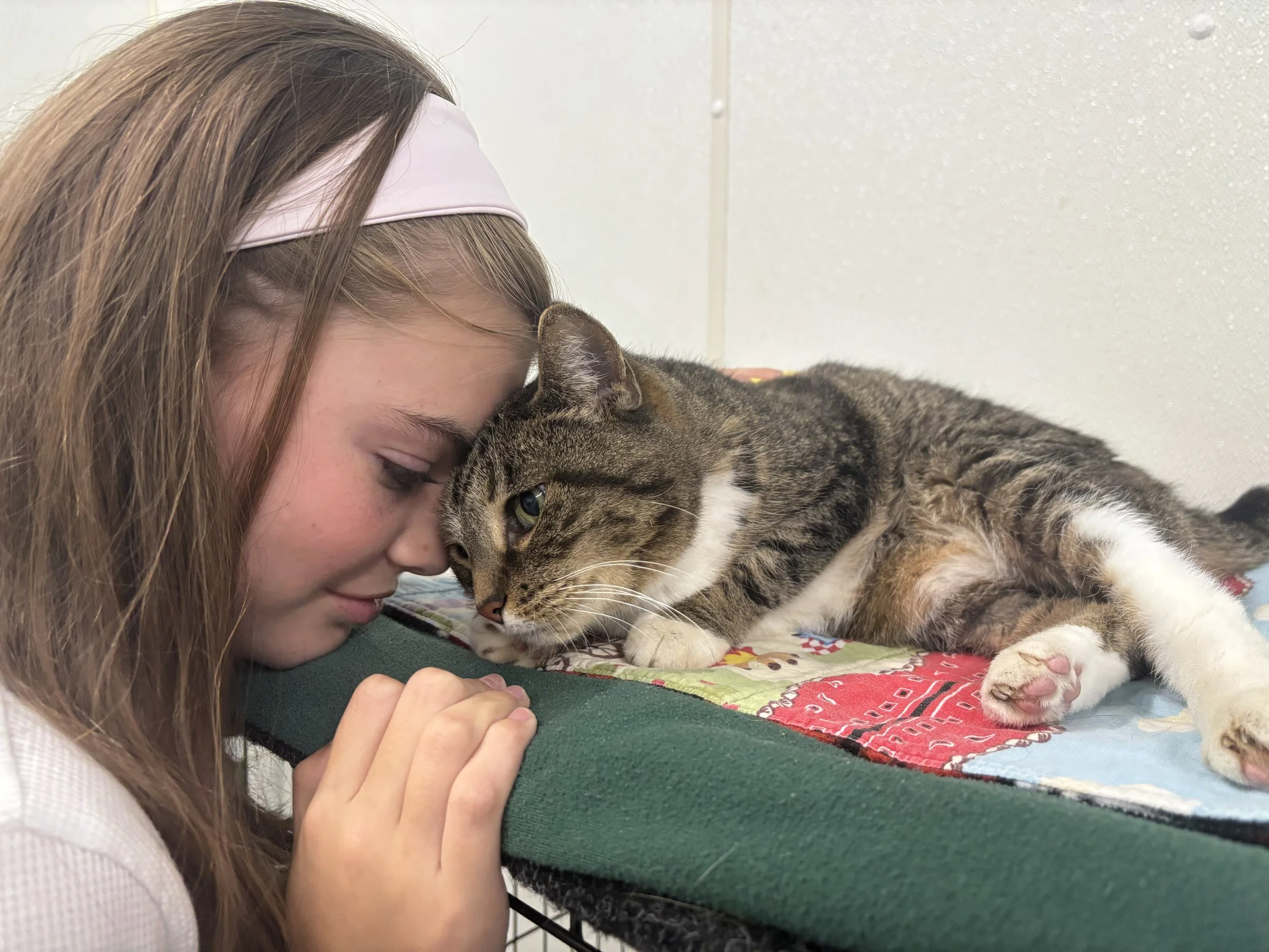 In this issue, we’re shining the spotlight on 14-year-old Sylvia Elliott! Every other Saturday evening, Sylvia joins her mom, Megan, on the Feeding Team to help care for the cats at the shelter. Whether she’s refilling bowls, tidying rooms, or offering a gentle lap, she brings a calm, caring presence the cats adore. Sylvia and her family also are a part of HART’s Kitten Foster Team, giving moms and kittens a loving start before adoption. Her dedication shows that kindness has no age limit!